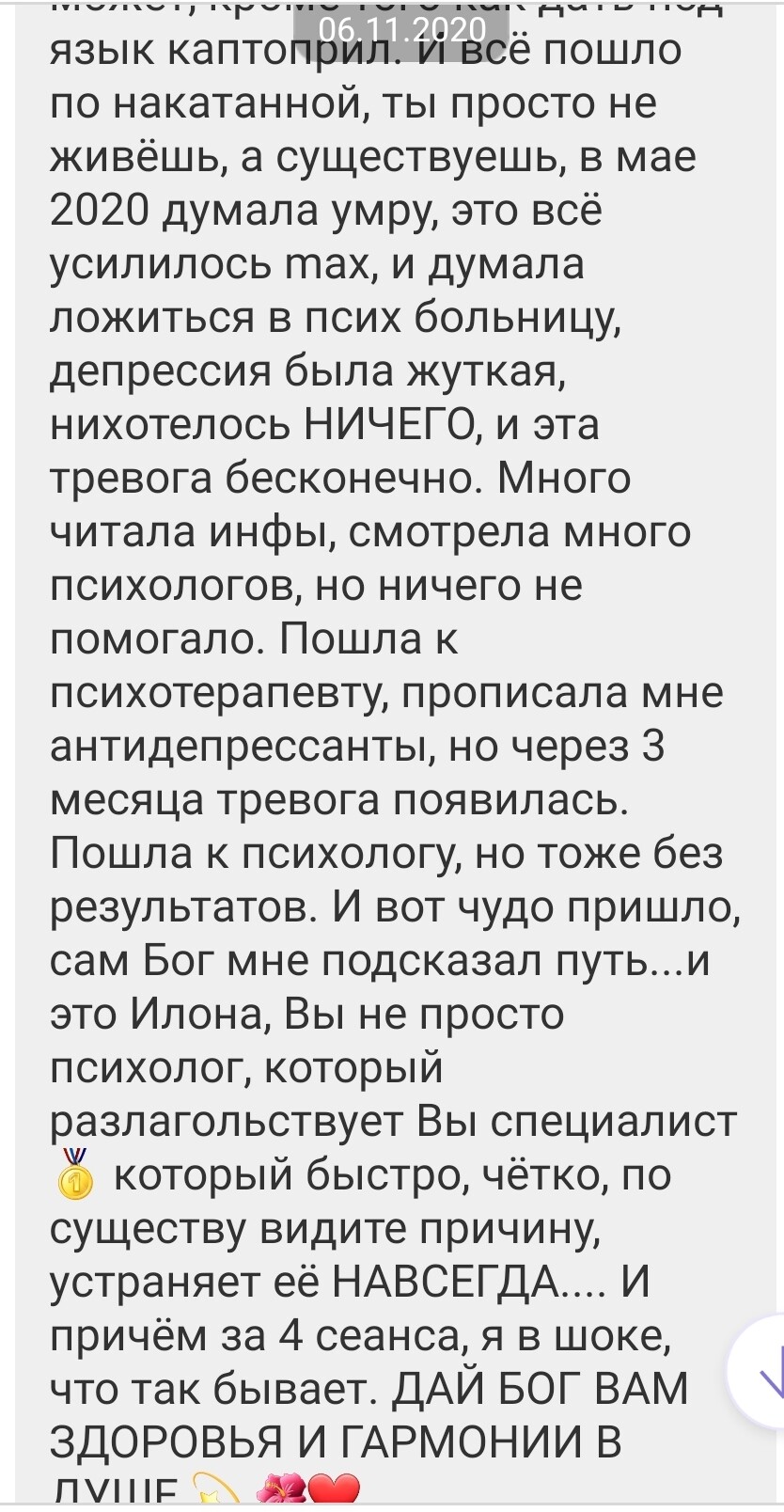 Моя цель — не просто помочь вам временно избавиться от тревожности, приступов атак и страхов. Я помогаю найти истинную причину ваших состояний и устранить её навсегда. Вы не потратите месяцы и не переживете дополнительные стрессы.